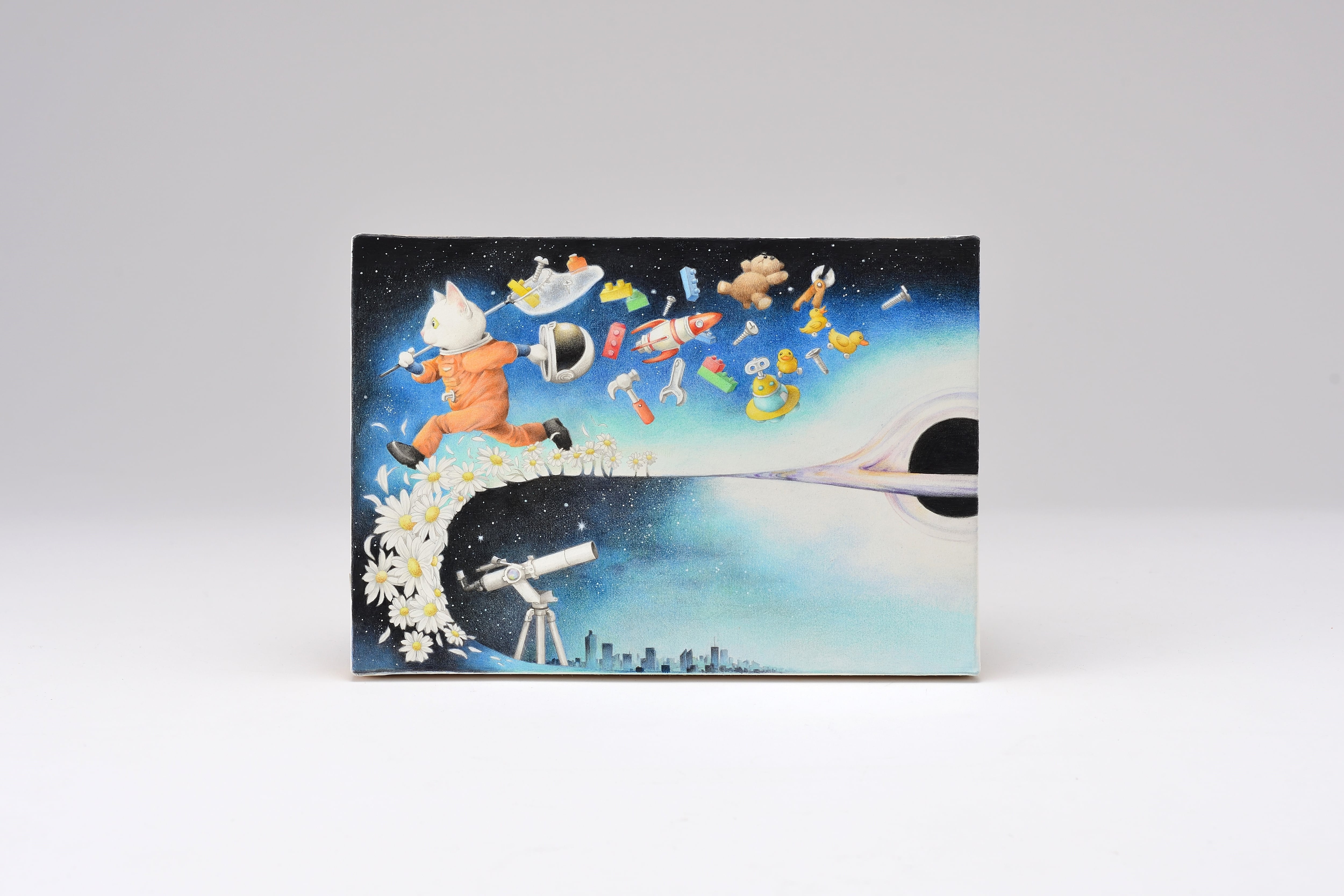 Artist : falso 2019年に人類史上初めて撮影できたブラックホール。 世界6箇所の電波望遠鏡を繋いで撮影された様子は、 まるでものすごい頭のいい人たちが壮大な遊びを楽しんでいるように感じました。 技法/アクリル絵の具 色鉛筆 鉛筆