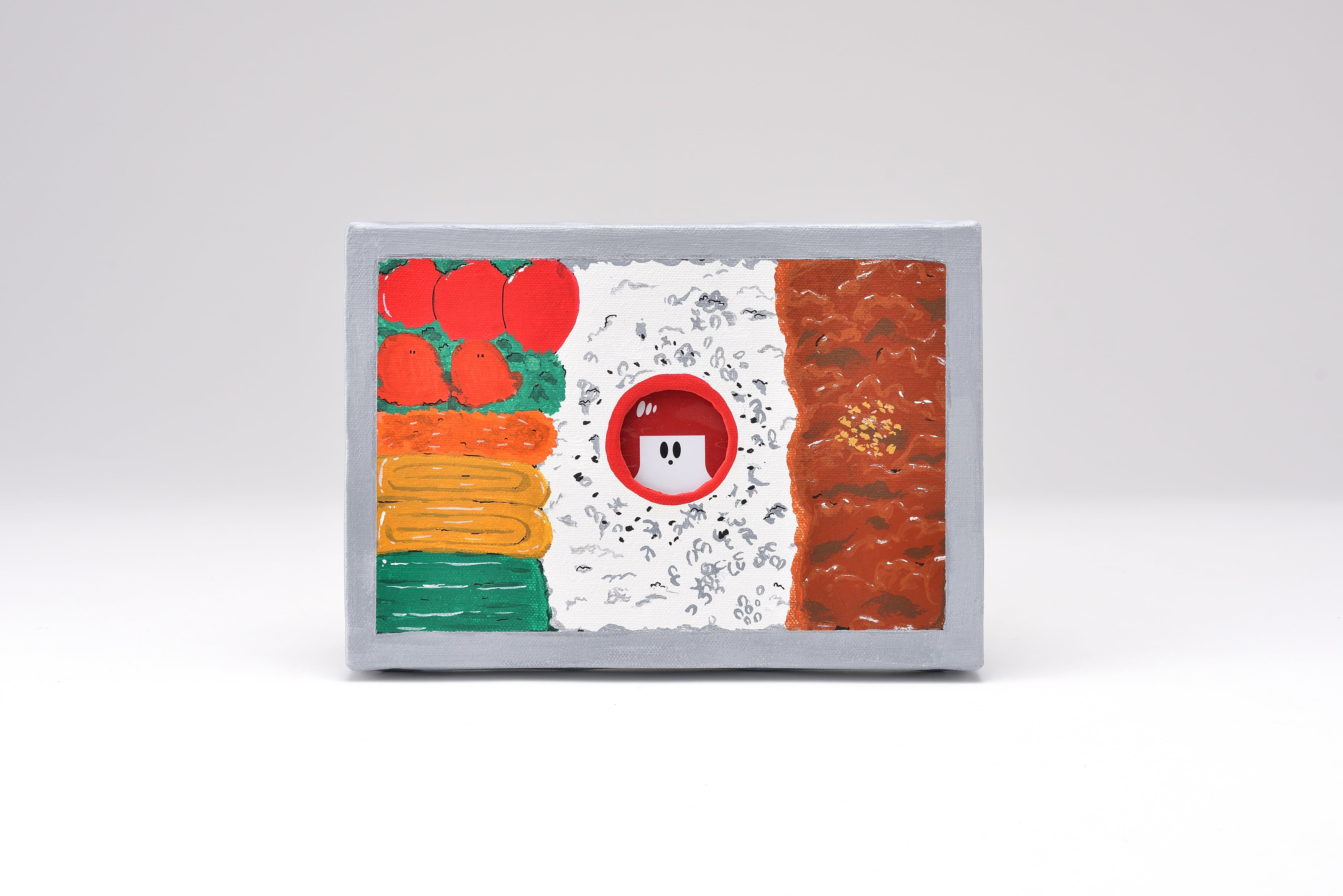 Artist : kaohame お弁当から女の子の顔が出ているカオハメキャンバスです。 ご飯に囲まれたら、きっとお腹が満たされるんだろうなと思い制作しました。 裏面にケースがあるため、顔をお手持ちの写真と変更することが可能です。 技法/アクリル画