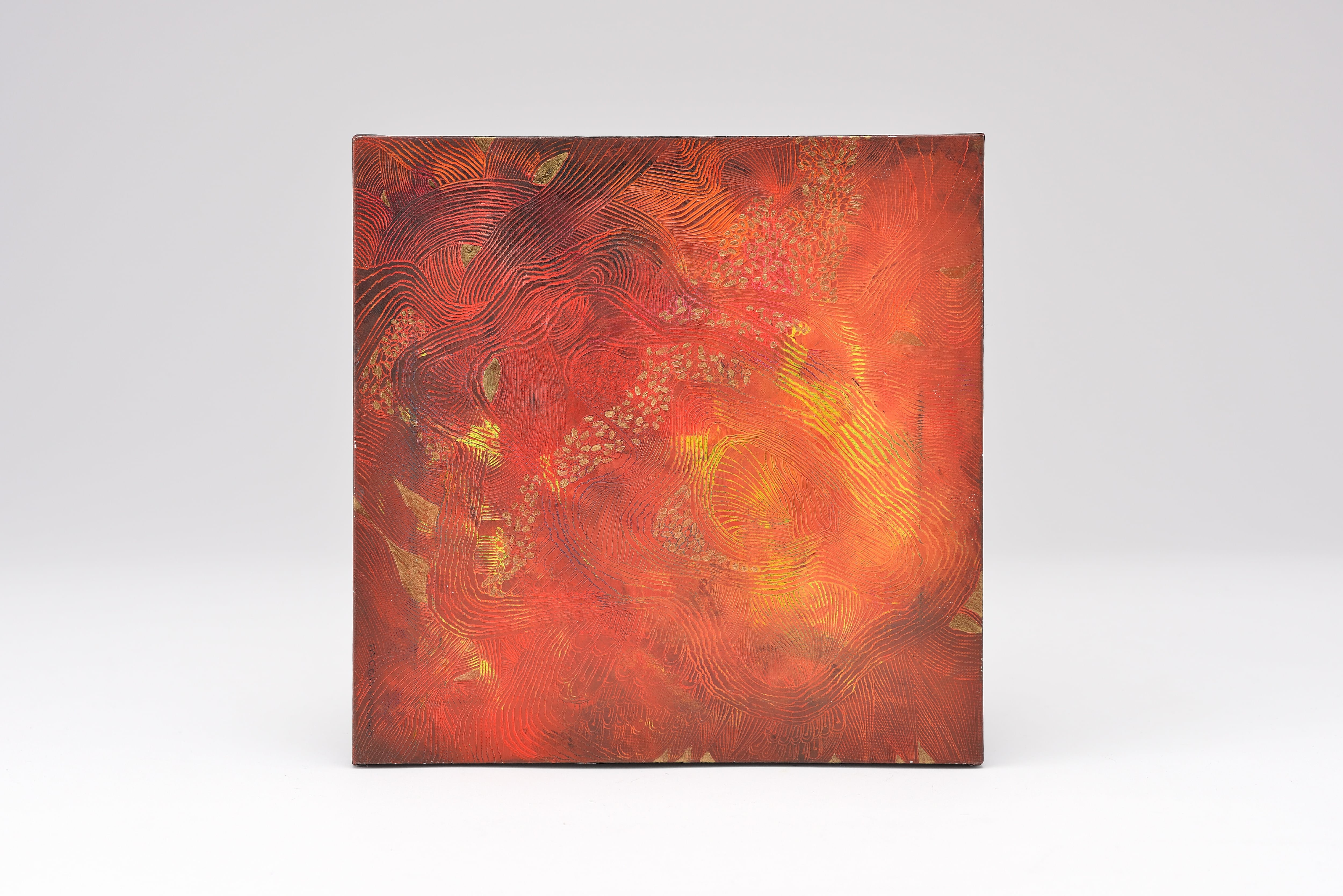 Artist : moonmomo 「燃ゆる」 アカとアカとアカとアカと 暗闇で 轟々と燃え滾る炎のように アツくアツくアツく ソコココから アツく熱を帯びた 響きのオトが キコエル 目を瞑っていても ソコニアル 技法/油絵