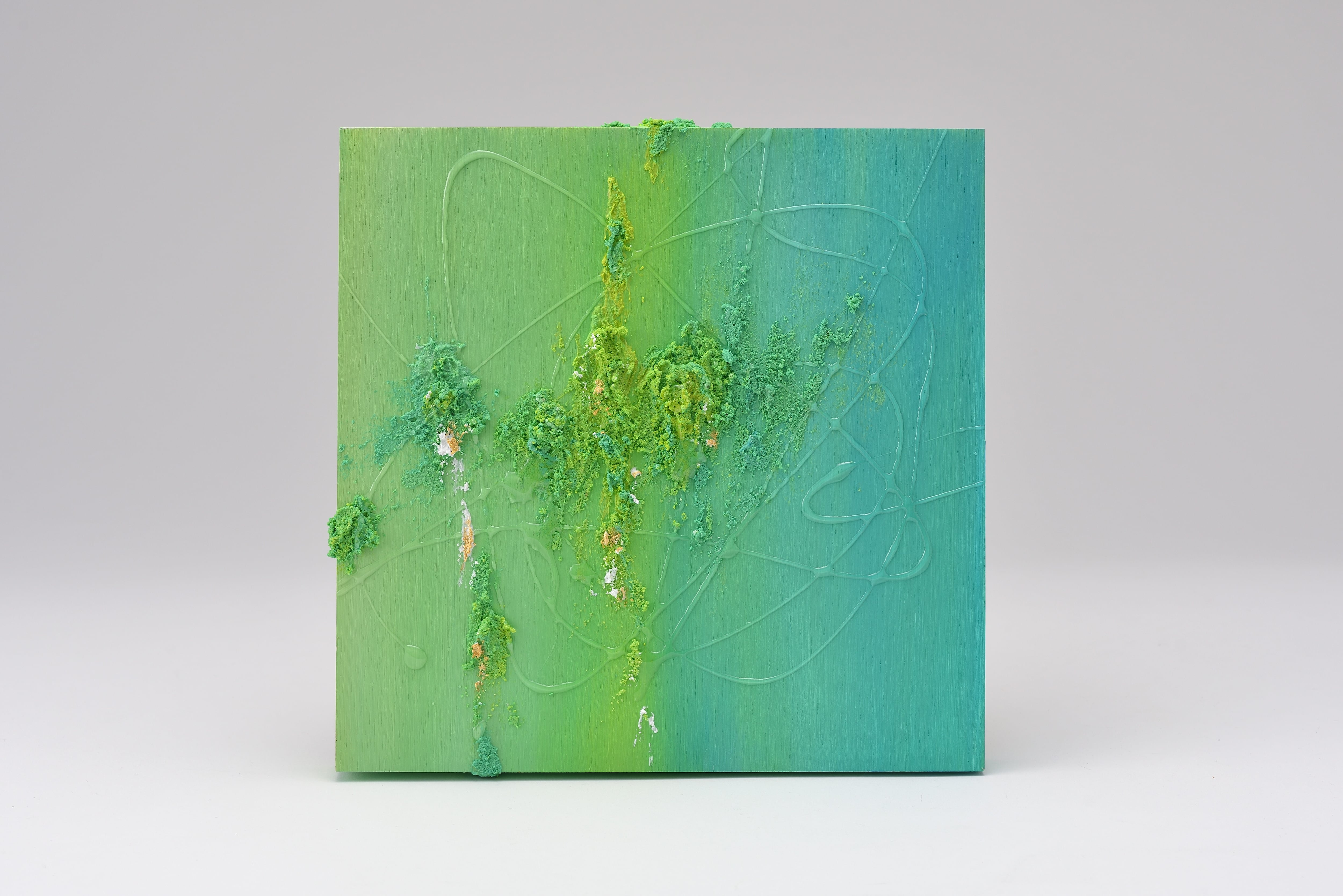 Artist : risa. 生命が芽吹く音なき鼓動を色彩に重ね、触れるたびに記憶がみずみずしく蘇る。 緑の揺らぎの中に、始まりの気配と心を解きほぐす余白を感じていただければ幸いです。 技法/Acrylic,sand,resin,wood panel
