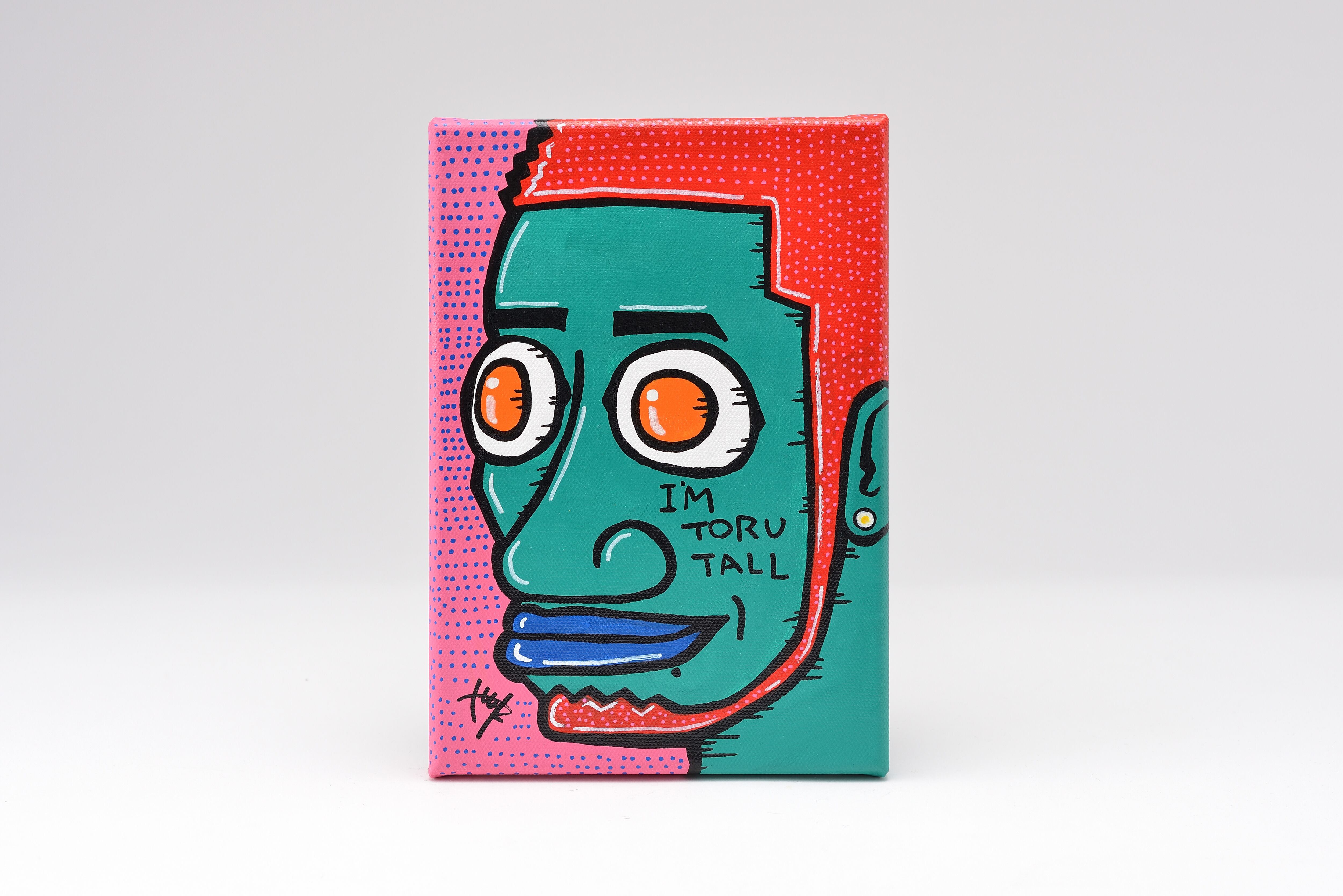 Artist : THOR(トール) 作家の定番作品、「自画像」を制作いたしました。 ポップなカラーリングと目玉を目玉焼きにした、親父ギャグです。 目玉焼きは私にとって、「幸せ」を表現するシンボルです。 技法/アクリル絵の具、ポスカ
