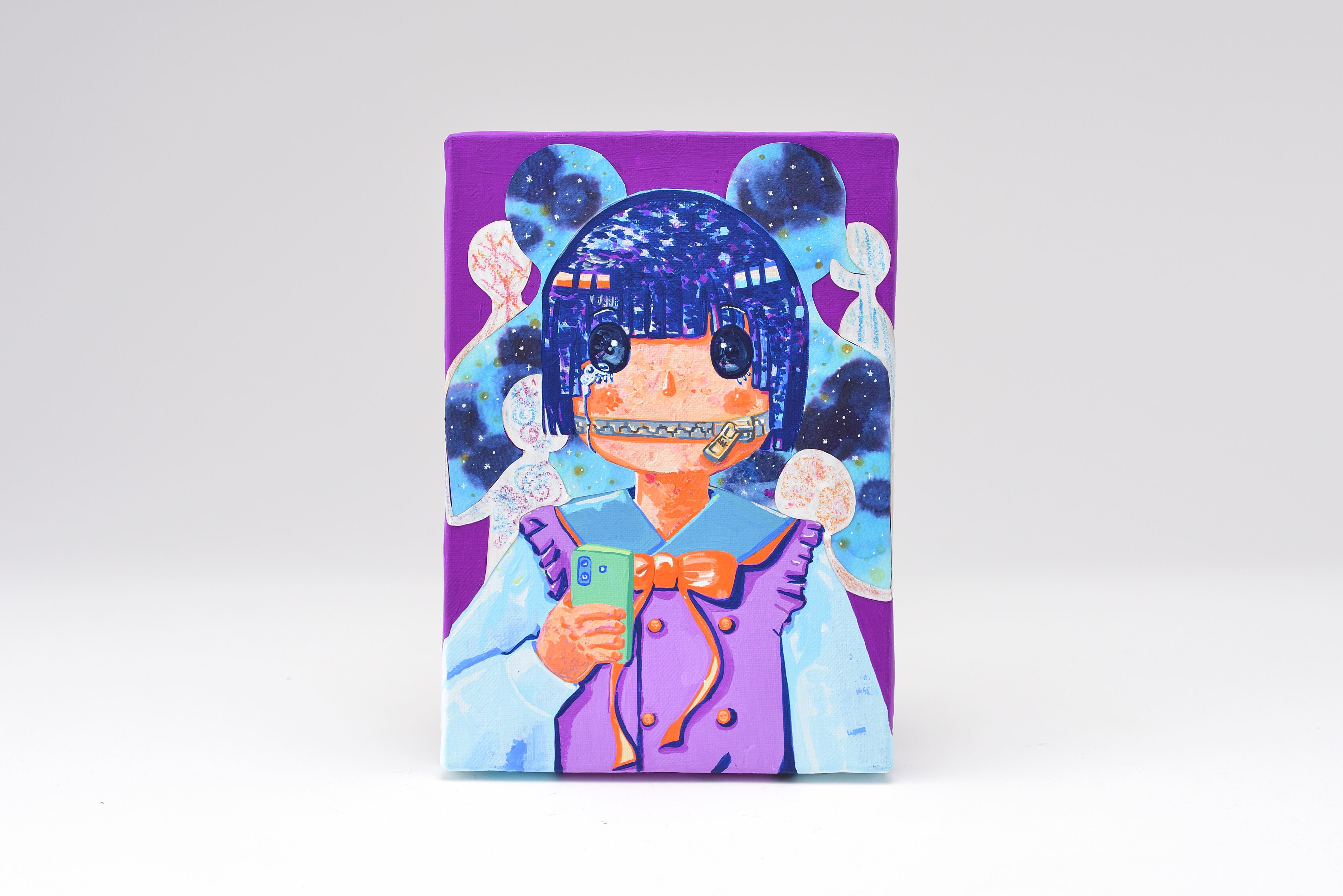 Artist : アケスケ 多様性を謳いながら、コンプライアンスで規制して、 矛盾の多い時代に言いたい事が言えなくて息を殺している貴方へ伝えたい 貴方の人生は始まったばかりで、そのチャックを開ける選択も実は貴方の自由だって事 技法/アクリルガッシュ、コピック、コピックインク、ミクストメディア