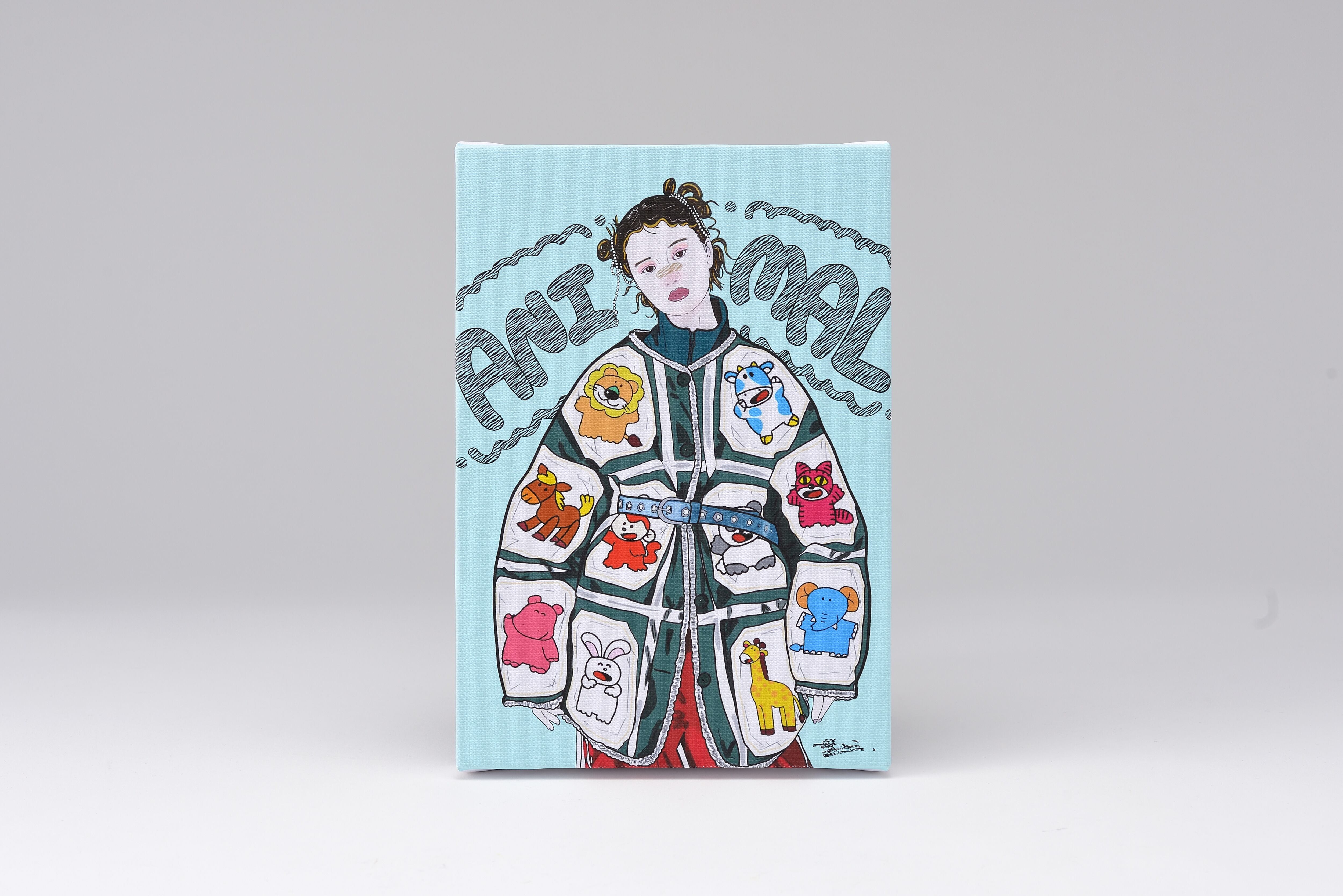 Artist : シモダアユミ 「共に生きる」は日本を代表するお菓子を洋服に描き、伝統と現代を融合させた作品です。 動物と人が共に生きる未来を願い、カンボジア展示で世界へ一歩を踏み出しました。 これからも歩み続けたい想いを込めています。 技法/デジタル、アナログ