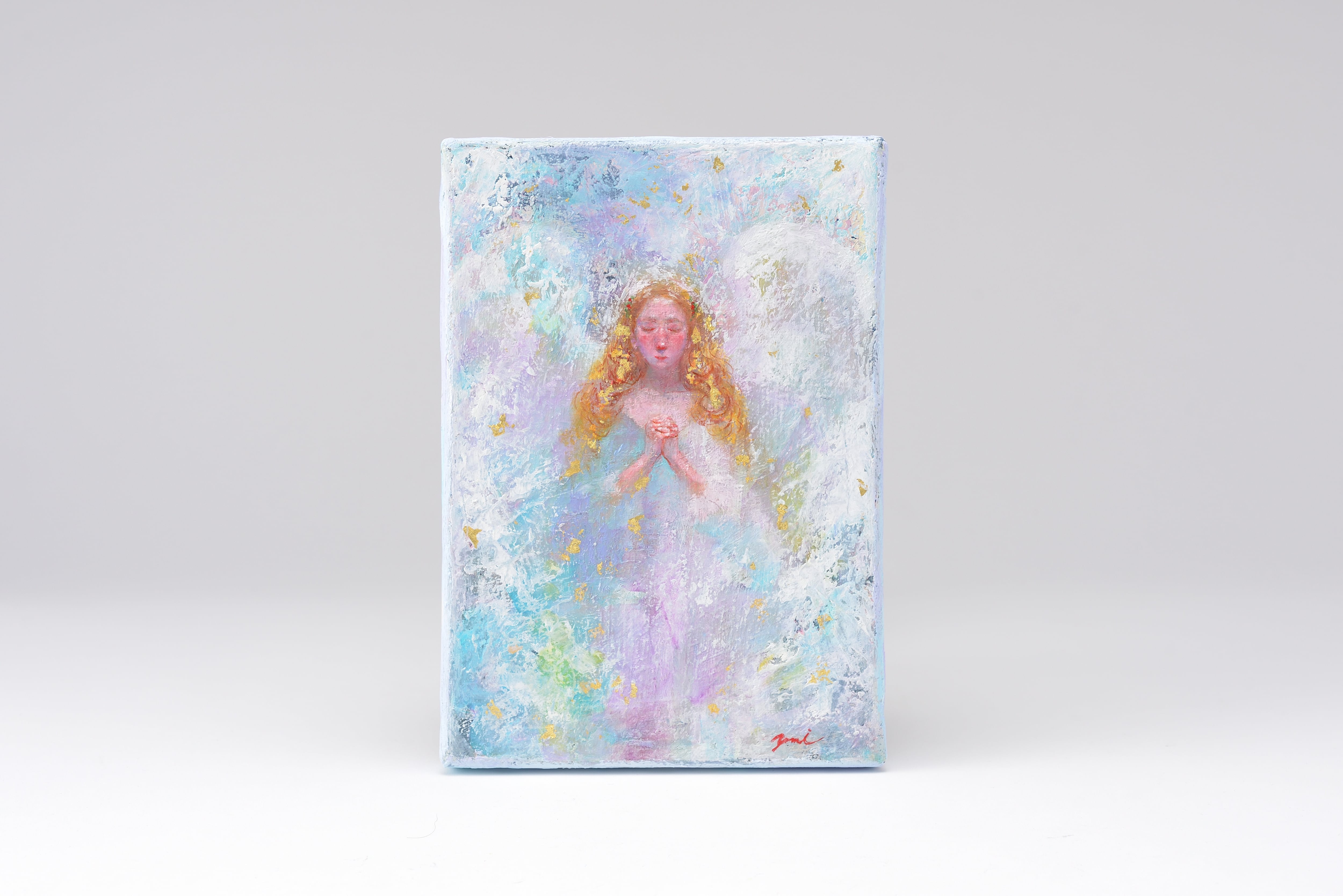 Artist : 翠木唯水 星よみの子 乳白色の銀河を見上げ 群青の空にひとり 涙は星屑 ほんとうのことは 言葉にならない これは思い出 小さい手の中に 握りしめた星のかけらは 白く優しい光でささやく 金沢金箔使用 技法/油絵