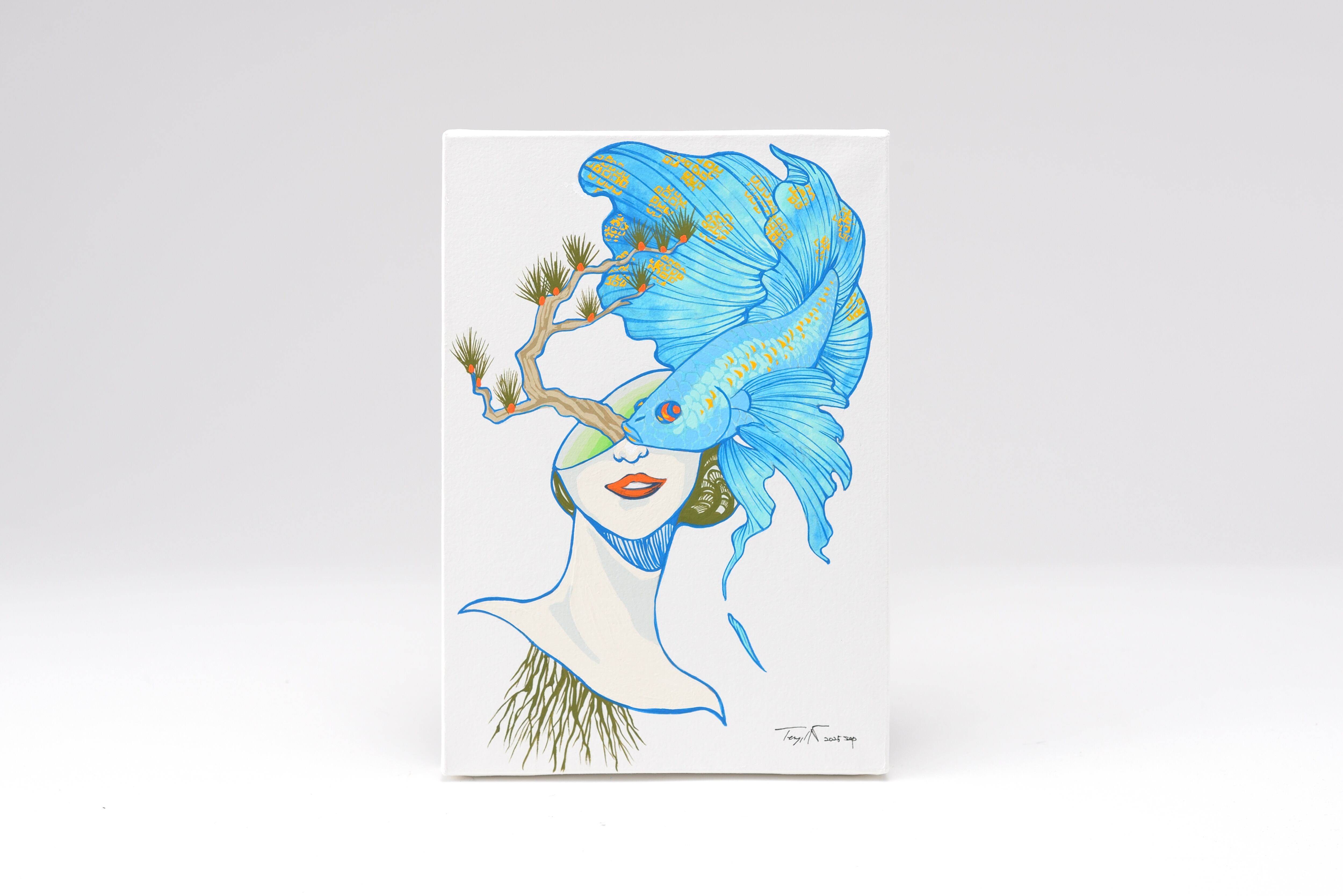 Artist : 津田 テリー直美 今回は、内なる盆栽から広がる、青いCocktailみたいな小宇宙を描いてみました。 技法/アクリルガッシュ、画用紙