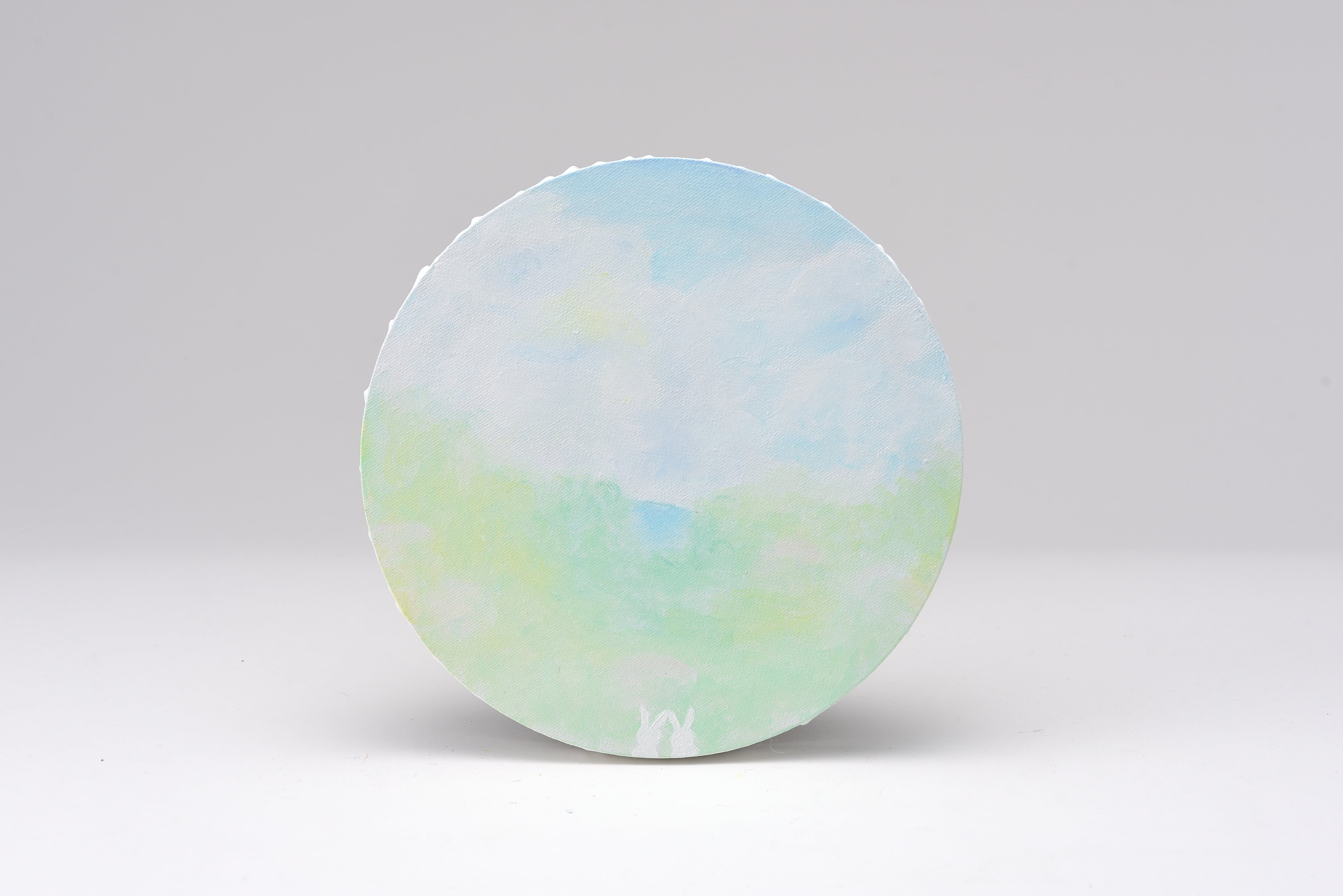 Artist : 天響 櫻 神秘の泉シリーズ『秘境』 夢うつつの淡く幻想的な世界 うさぎの視線の先に、神秘の泉は現れるのか 技法/アクリル画