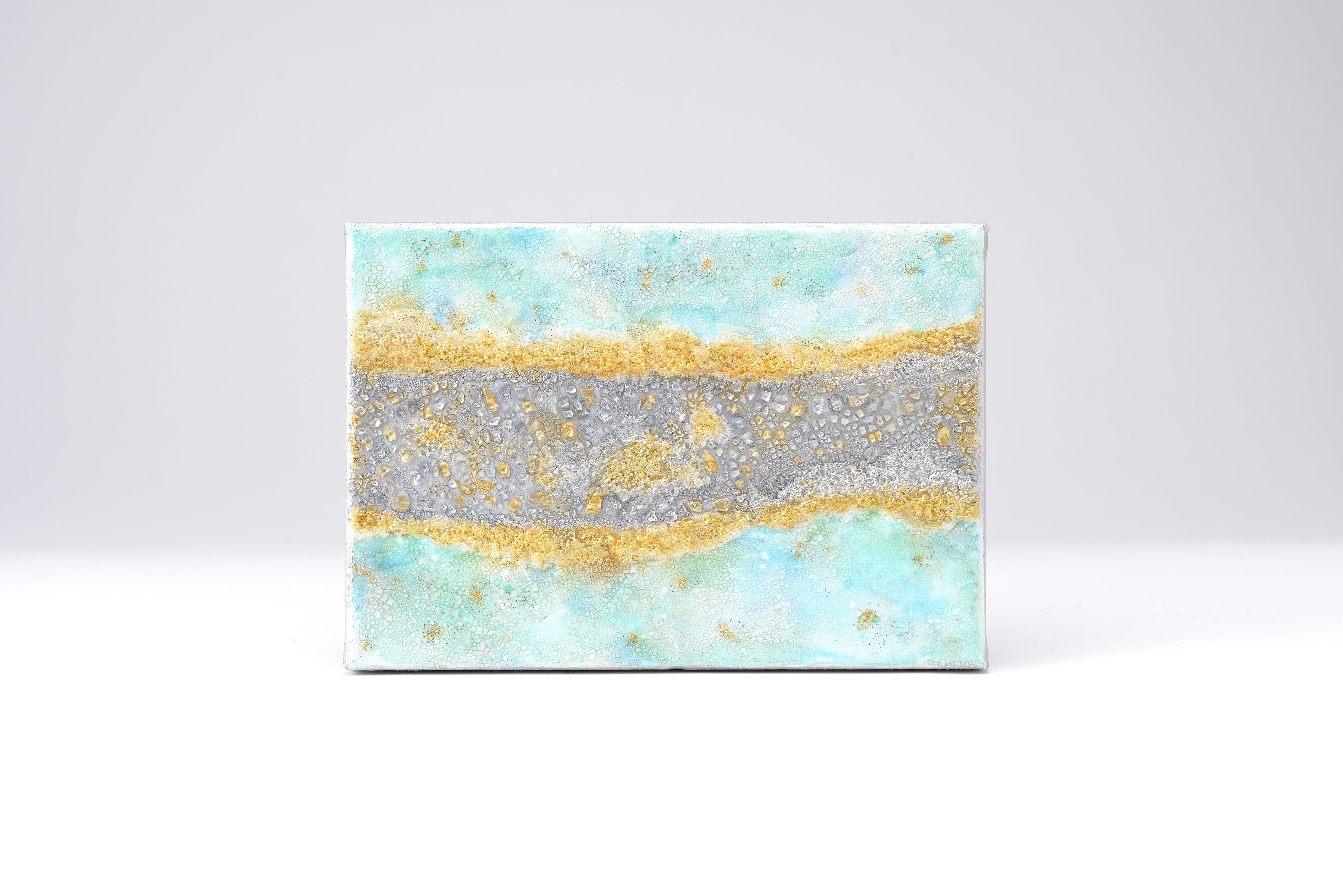Artist : M Art Miyako.S "冬空の遥か彼方にある星群の輝きが、凍てつく冬を魅惑的に彩る この作品は、キャンバスに3種類の異なるテクスチャーを用いて下地を作り、アルコールインクで完成させた ミクストメディアアートです"