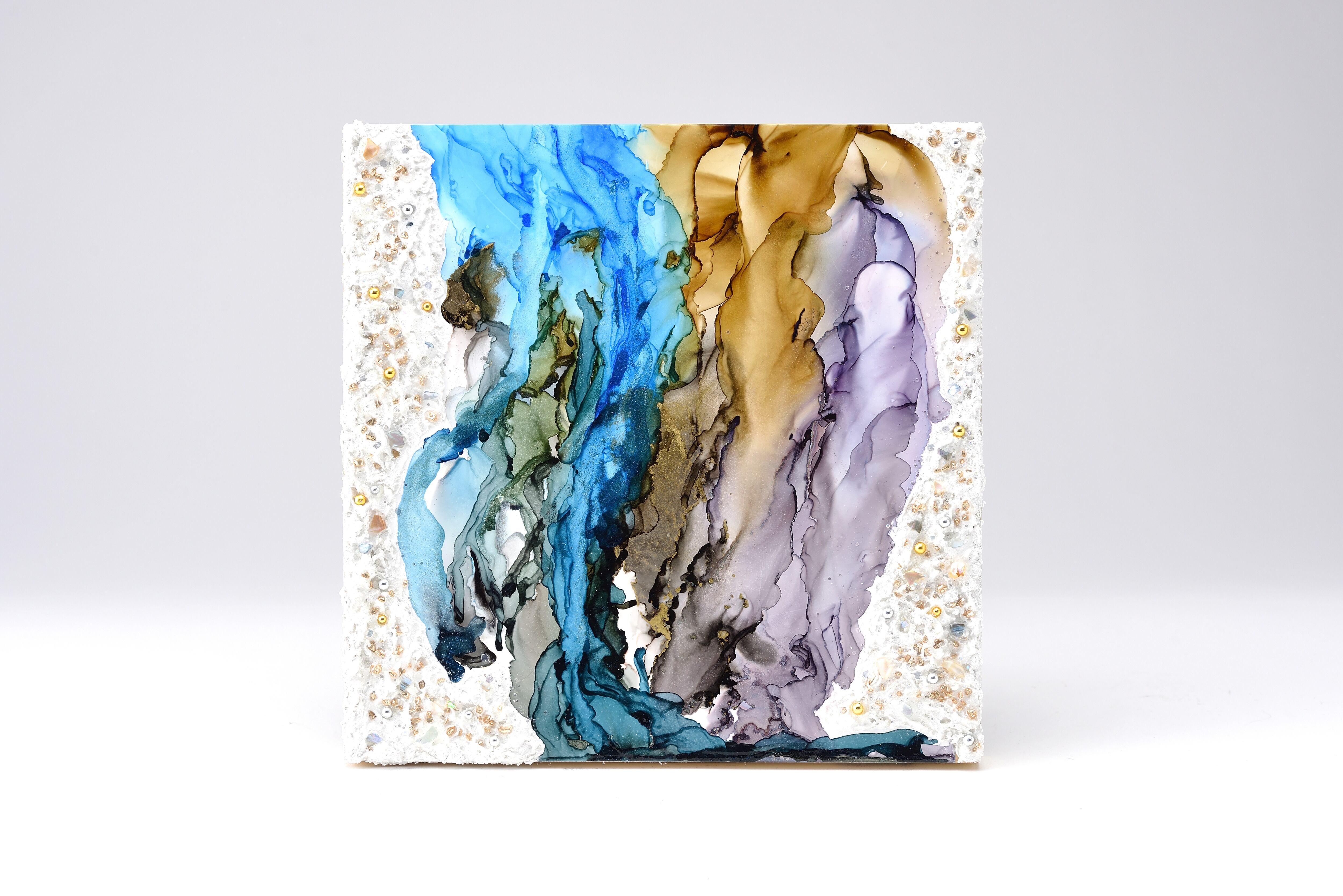 Artist : naVi "滝の凍る瞬間は自然が生む一瞬の芸術。無骨な岩肌と澄んだ水が織りなす静寂の力、美しく光る青の輝きを描きました。 正面からだけではなく、横から眺めた時に見える滝の青さの中に煌めくラメの輝きも、ご堪能下さい" ※こちらの作品は非売品です。 (システムの都合上、仮の金額が記載されています)
