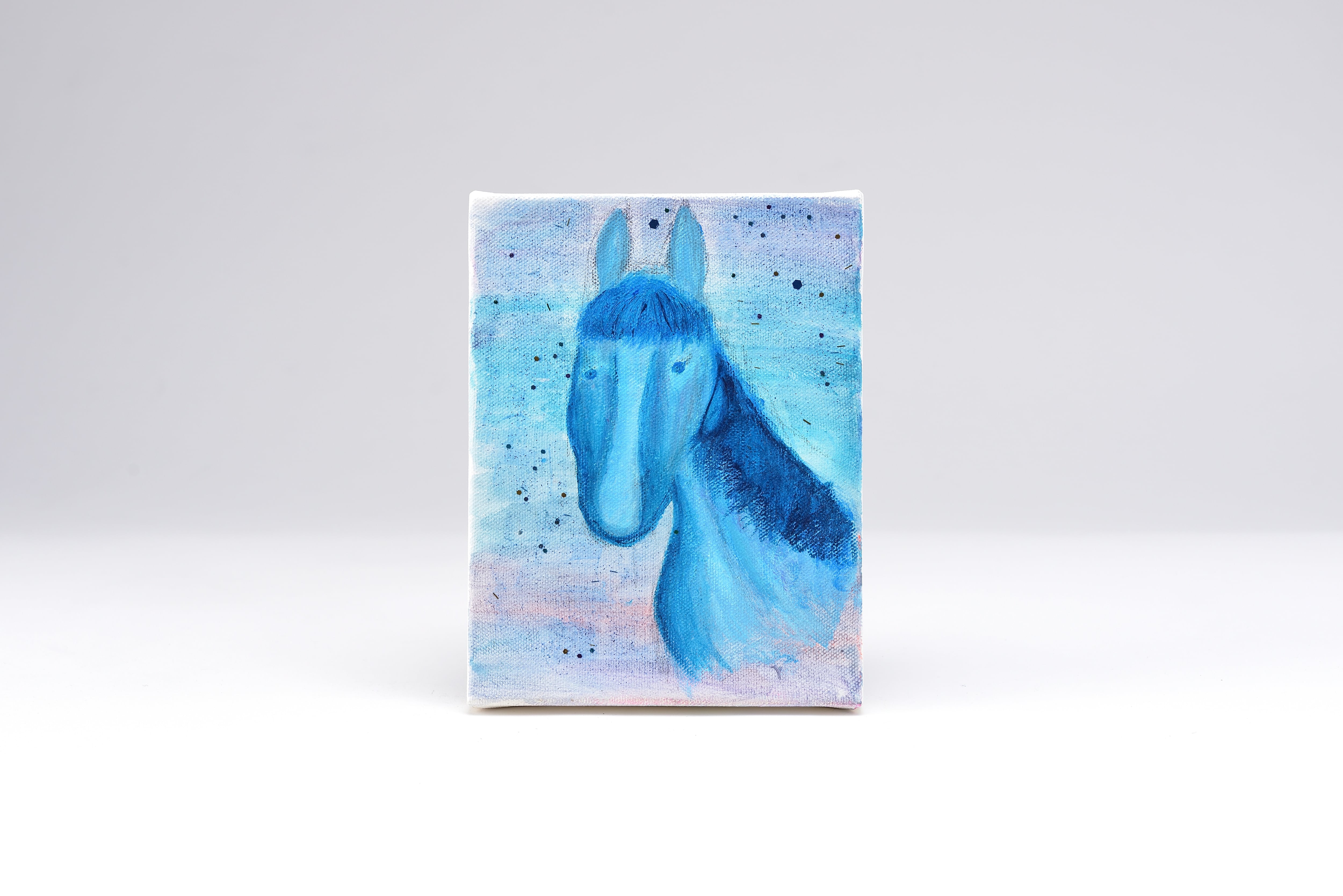 Artist : M.H 静寂な馬。 青が好きでラフに描いたので、少しイノセンスも表現しました。 来場者の方々に是非可愛がっていただけたら嬉しいでス、午年ですし。 技法/アクリル ※こちらの作品は非売品です。 (システムの都合上、仮の金額が記載されています)