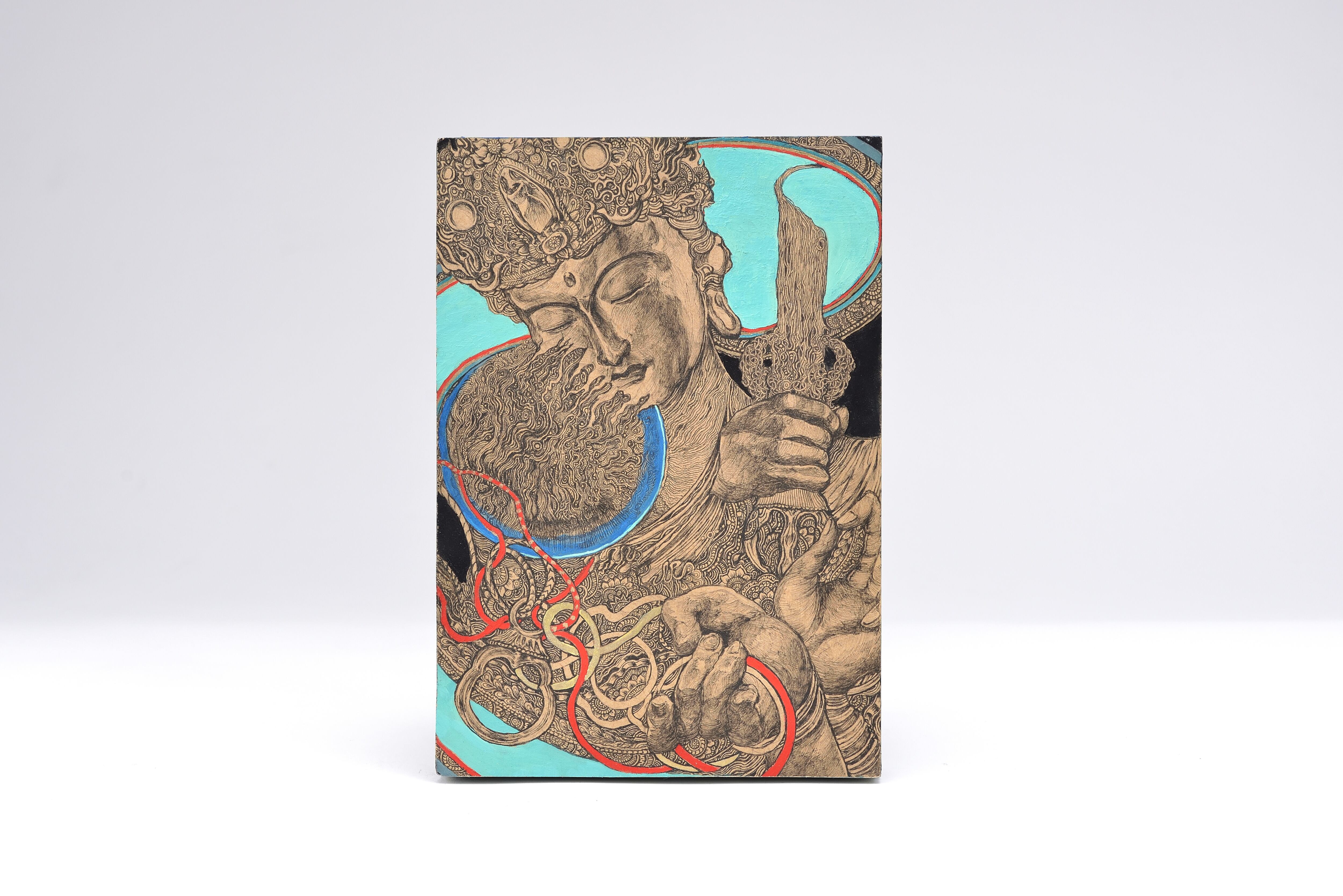 Artist : MKT096 三途から「救い」「掬って」くださるはずの観音様の姿が、 とても冷たく、静かで、恐ろしいんです。 まるで底なしの穴を見ているかのように、 人工的な恐ろしさが頭の側を吹き抜けていくんです。 技法/ペン画・アクリル絵具