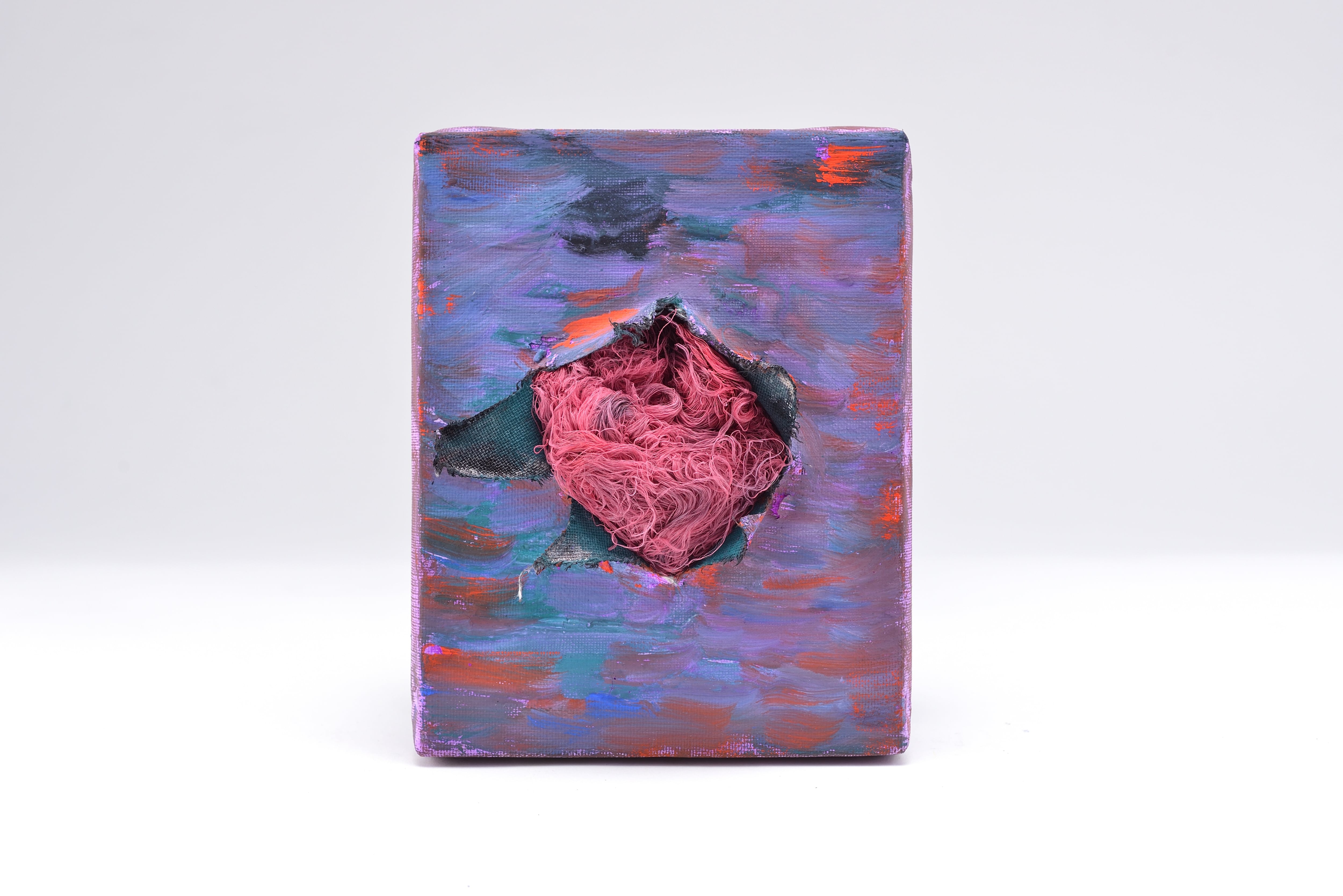 Artist : nu:no 悔しかった思いから心をえぐられた思いを表現しました。 心が出てきてしまって血まみれのハートのように人絹を染めました 技法/ポスターカラー、人絹