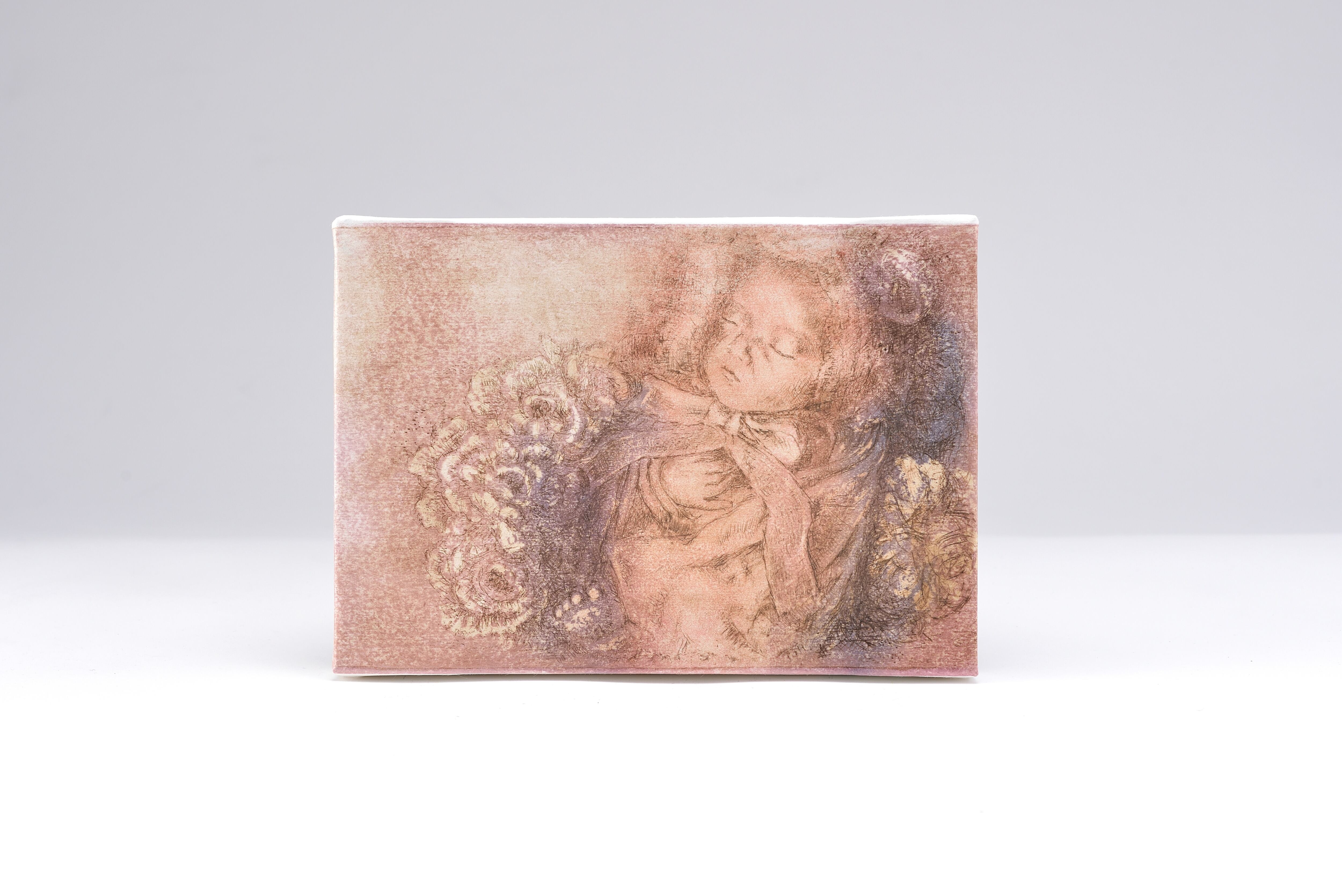 Artist : Tuya 木版画です。 銅版画のように見えますが、木版画です。 3〜4版ほど使っています。 同じ版で数回摺り重ねています。 最後の版は、凹版を作り、銅版画のようにプレス機を使って刷っています。 技法/木版画(凹凸版刷り)