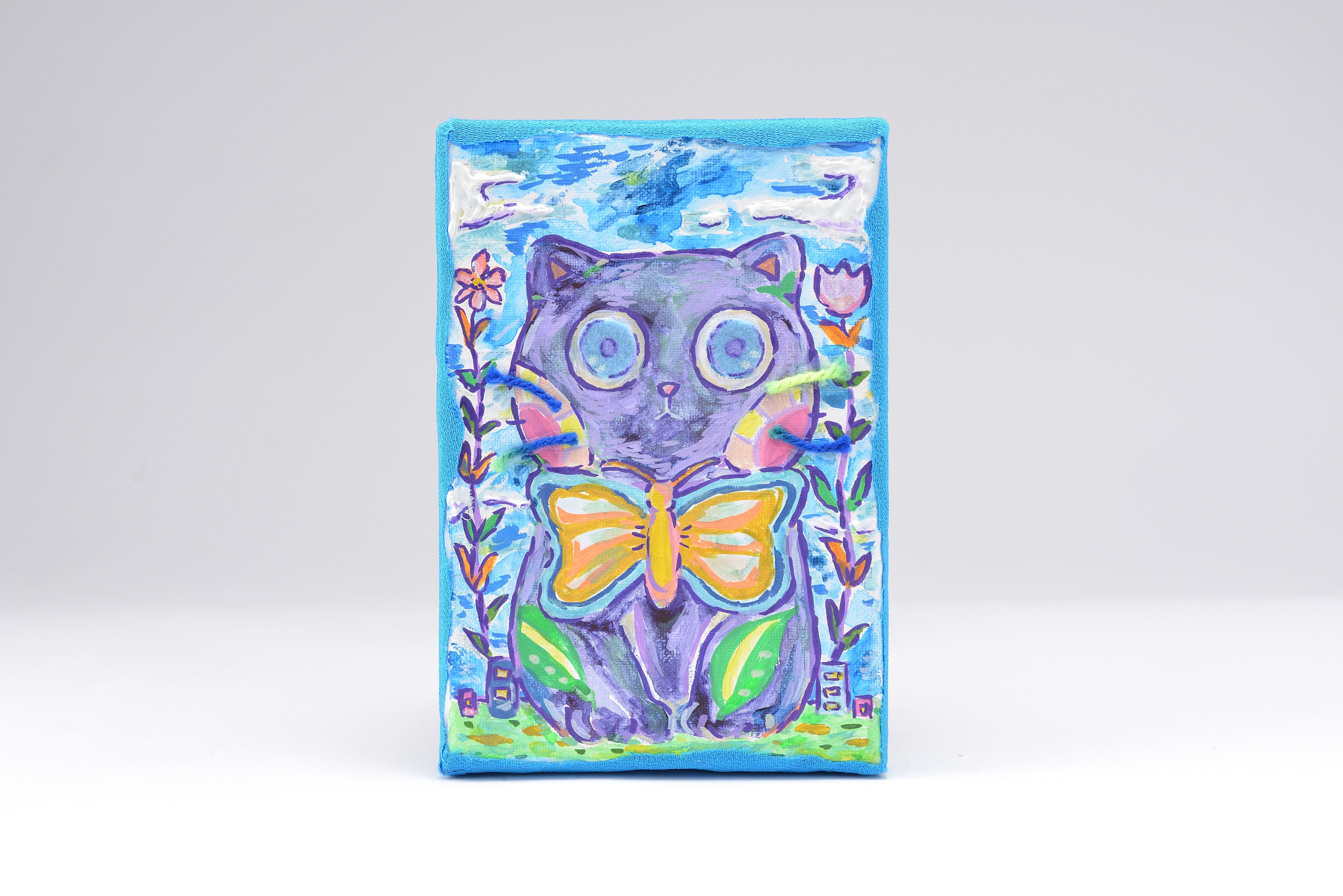 Artist : ふたばりく 青空にぼーっと立っている猫ちゃんの様子を描いてみました。 何を考えているかは謎です。 技法/アクリル絵の具、水彩絵の具、毛糸、布、ボンド、アクリルマーカー