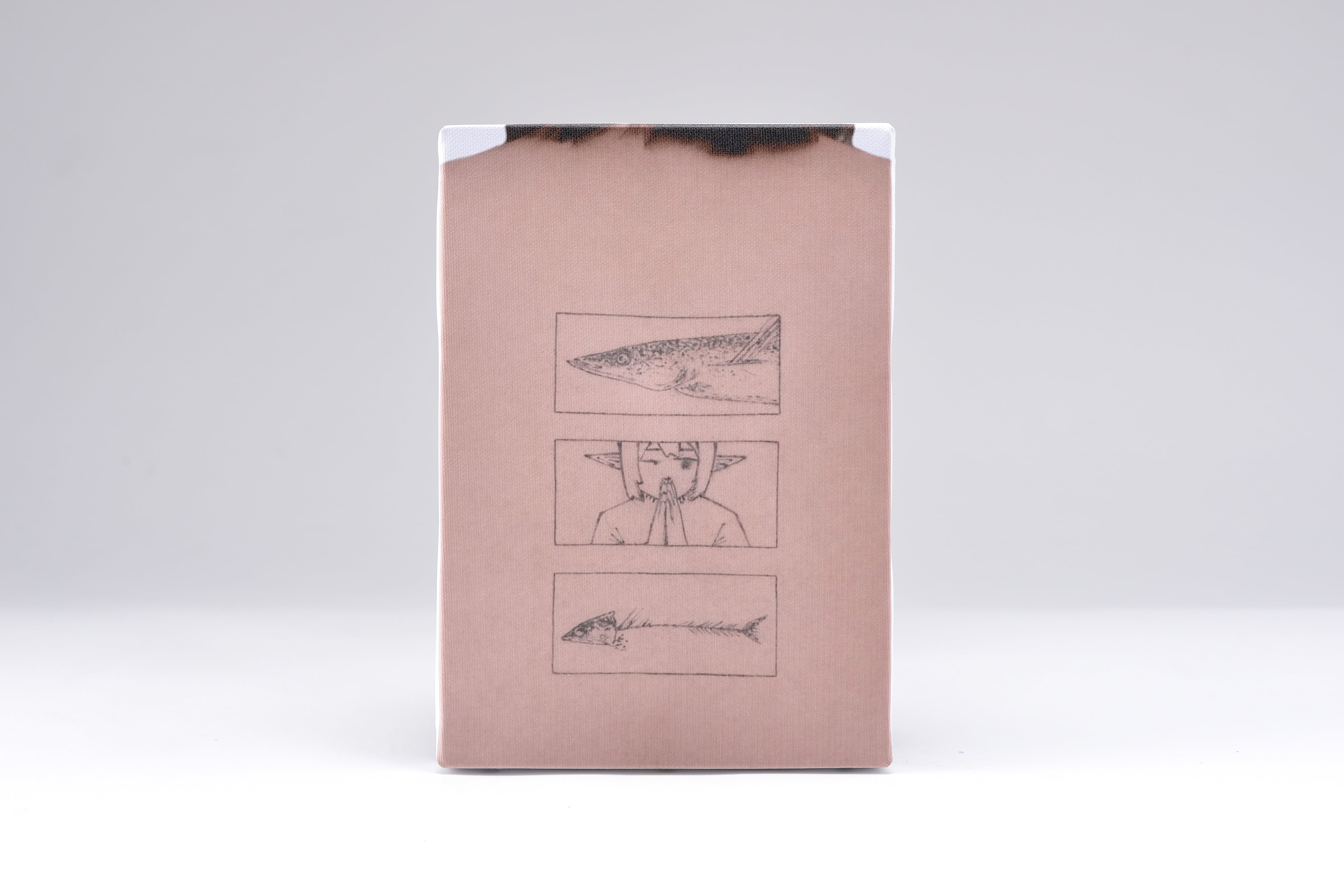 Artist : カリン ジャグアタトゥー(約2週間で自然に消える自然由来のタトゥー)を用い、友人の背中に秋刀魚を食す漫画を描きました。 人体を支持体とすることで生まれる曲線と、友人の美しい背中が作品の要素となっています。 技法/ジャグアタトューによるボディドローイング